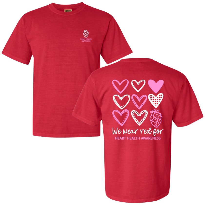 Heart Health Awareness Tee is available in short sleeve and long sleeve in both Gildan and Comfort Colors.