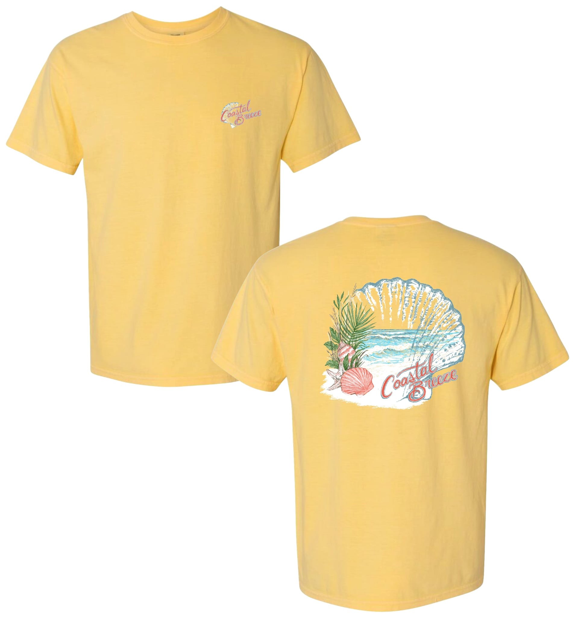 Coastal Breeze Seashell Tee – soft Comfort Colors shirt with seashell beach design.